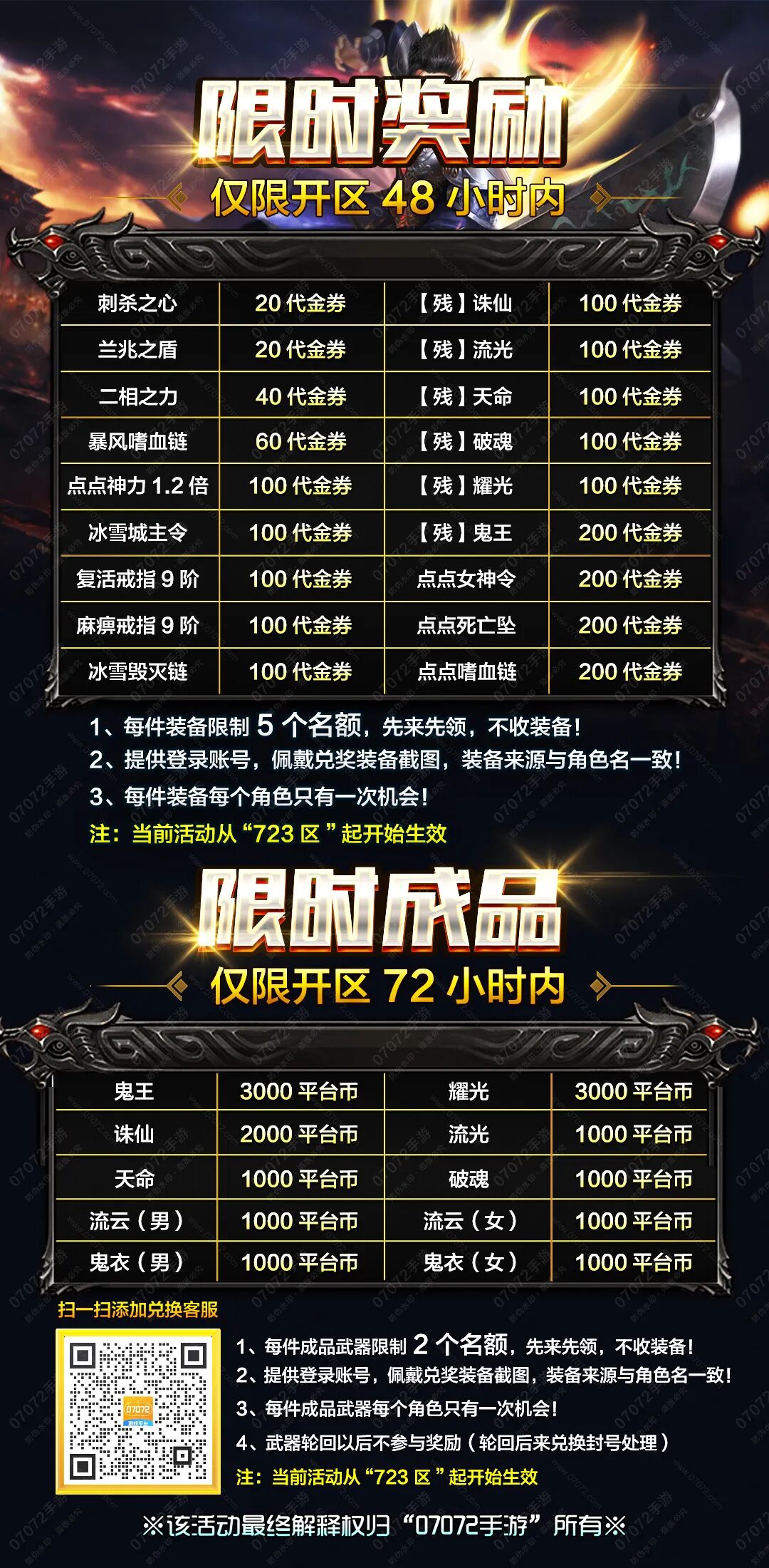 07072手游旗下《冰雪单职业之盟重英雄》为感谢广大玩家一直以来的鼎力支持与喜爱,现即日起线下“福利活动”跨幅度增加,我们秉着“取之于玩家,用之于玩家”的想法和态度,为大家创造更好的游戏乐趣和体验。